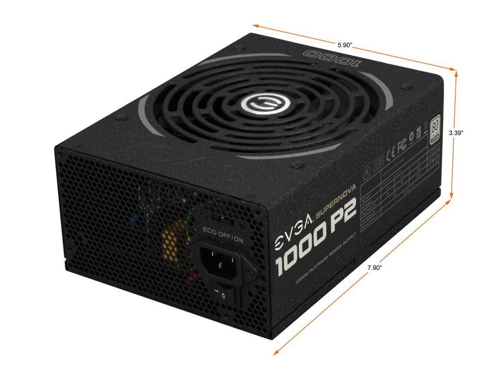 EVGA adds a platinum series power supply to its full line with the SuperNOVA 1000 P2. This Power supply is 80 PLUS Platinum rated with an efficiency of 92% under typical loads. The new ECO Thermal Control Fan System offers Fan RPM modes to provide zero fan noise during low load operations. This provides improved efficiency for longer operation, less power consumption, reduced energy costs and minimal heat dissipation. Backed by a 10-year warranty, gain peace of mind from the heart of your system and power up with the EVGA SuperNOVA 1000 P2!