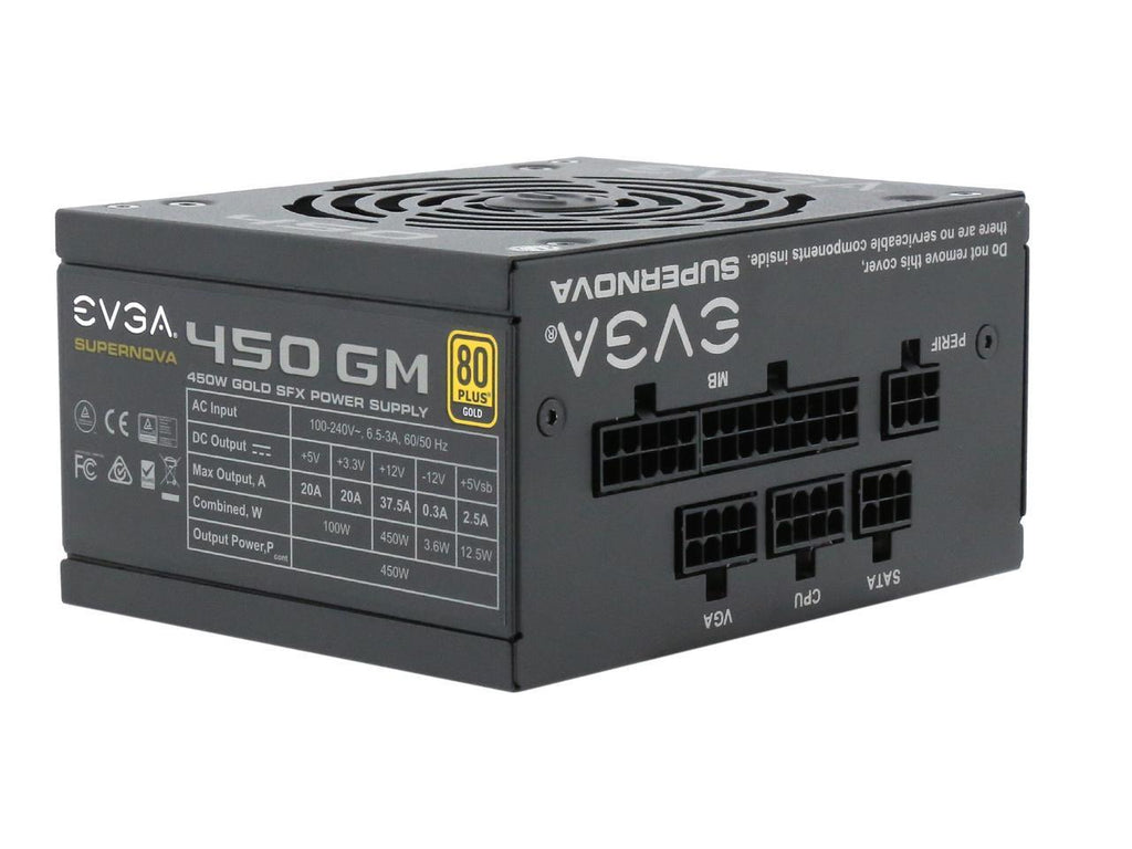 Introducing the EVGA SuperNOVA GM line. The 450 GM is a new power supply that's engineered to bring the power, prestige, and performance of EVGA's award-winning power supplies into an SFX-Standard form factor. Featuring 80 Plus Gold certified efficiency, fully-modular cables, and 100% Japanese capacitors, the GM's cast a long shadow over its competition. Pint-sized, affordable, and packed with everything you need, the EVGA SuperNOVA GM power supplies make short work on tight spaces.
