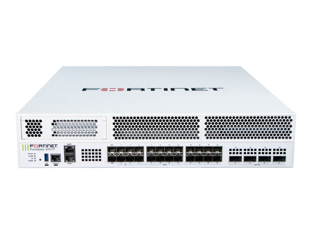 Fortinet FortiGate 3700F - Security appliance - with 1 year 24x7 FortiCare Support + 1 year FortiGuard Unified Threat Protection (UTP) - 40GbE, 100GbE, 25GbE, 50GbE, 200GbE, 400GbE - front to back airflow - 2U - rack-mountable
