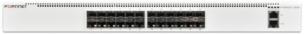 Fortinet Layer 2/3 FortiGate switch controller compatible switch with 24 x SFP / SFP+ slots GE/10 GE capable with dual AC power supplies. Basic switching RJ-45 Ethernet ports type: 10G Ethernet (100/1000/10000), Basic switching RJ-45 Ethernet ports quantity: 24. MAC address table: 128000 entries, Switching capacity: 480 Gbit/s. Rack mounting, Form factor: 1U
