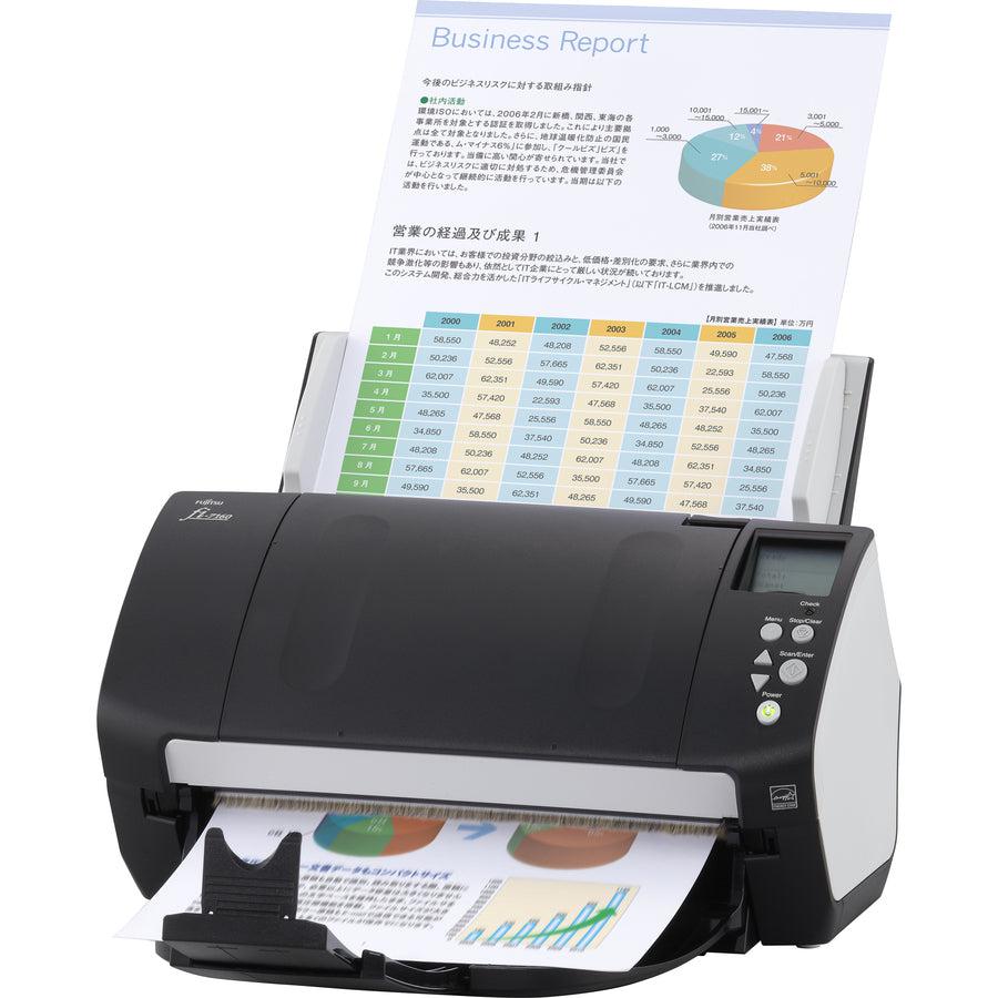 Fujitsu fi-7160 Deluxe Bundle. Maximum scan size: 210 x 5588 mm, Optical scanning resolution: 600 x 600 DPI, Output colour depth: 24 bit. Scanner type: ADF scanner, Product colour: Black, Grey, Display: LCD. Sensor type: CCD, Daily duty cycle (max): 4000 pages, Light source: White LED. Auto document feeder (ADF) input capacity: 80 sheets. Maximum ISO A-series paper size: A4, Scanning media types supported: Labels, Plain paper, Plastic Card, ISO A-series sizes (A0...A9): A4,A8