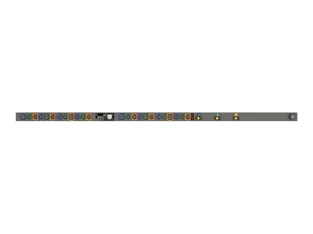 Geist Monitored Outlet Level MNR5MGB1-24PH68-3TL21A0A10-S-A - Power distribution unit (rack-mountable) - AC 120/208 V - 8.6 kW - 3-phase WYE - Ethernet 10/100/1000, USB, RS-232 - input: NEMA L21-30P - output connectors: 24 (18 x IEC 60320 C13, 6 x IEC 60320 C19) - 0U - black powder coat - TAA Compliant
