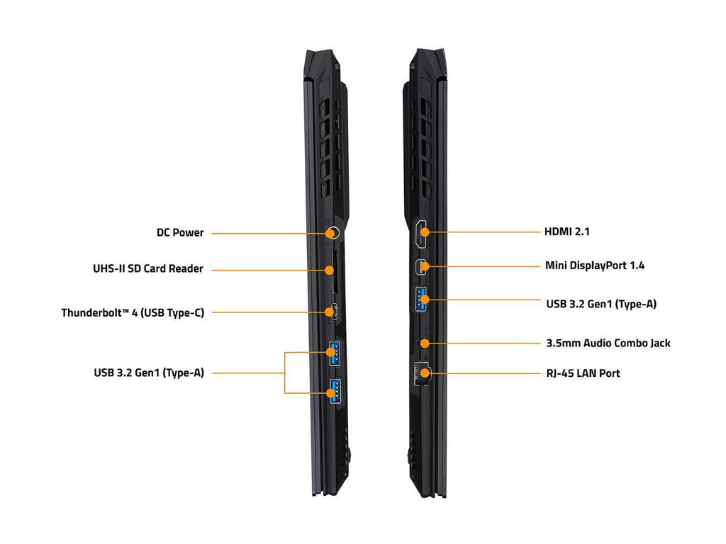 The AERO comes with a UHS-II SD card reader that offers a transfer rate of up to 300MB/s, which is 12 times faster than a traditional SD card reader. Don’t waste time on staring at the screen waiting for files to be transferred ever again.