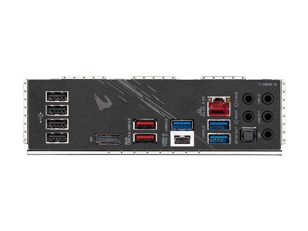 1 x USB Type-C port, with USB 3.2 Gen 2x2 support 2 x USB 3.2 Gen 2 Type-A ports (red) 3 x USB 3.2 Gen 1 ports 4 x USB 2.0/1.1 ports 1 x DisplayPort 1 x RJ-45 port 1 x optical S/PDIF Out connector 5 x audio jacks |