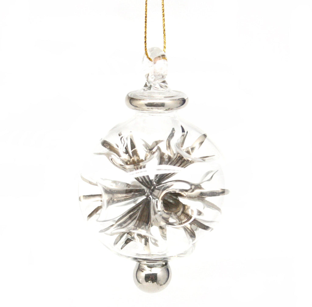 Glass Blown Pierced Ball Ornament - Silver