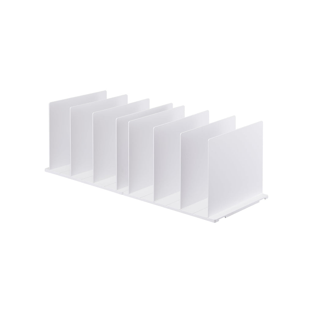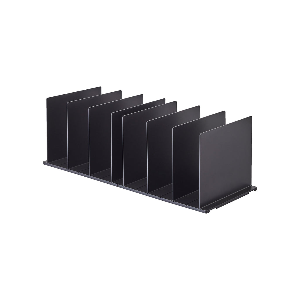 Product comes with two square bases that can be snapped together or used independently. Eight vertical dividers that can slide into the grooves found in the base are also provided.