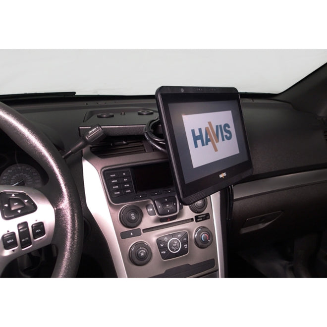 Product Details: - Havis dash mount bracket kit for 2013-2017 Ford Interceptor Utility - Designed primarily to be used with Havis touch screen display (TSD-101) - Unique friction based hinge allows for easy lift for access to OEM control panel - Hinge provides tilt swivel motion for left, right, up and down positioning - Design features close to dash for space saving in cabin - Positions computer monitor in a safe, convenient line of sight - Designed with occupants in mind, monitor swivels for improved viewing angle for driver and passenger. - Excellent space saving solution allows additional equipment to be mounted in console. - Easy installation with minimal parts needed for attaching to dash - No permanent modification necessary if user desires to run wire harness externally - Drilling required if user desires to conceal wire harness inside dash - In addition to Havis TSD-101, C-DMM-2000 Series mounts can be used for other light weight devices. - Recommended maximum weight carrying capacity = 4 lbs - Please view related products tab for additional innovative Havis solutions