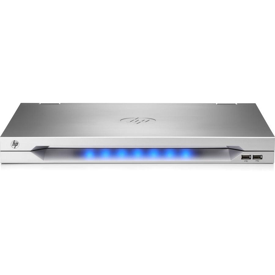 Ultra-Dense, High-Performance KVM Console Display and Keyboard - HP KVM Console Kits provide ultra-dense, high-performance KVM consoles that combine both the rack display panel and keyboard with touch pad in a 1U form factor that allows you to mount a KVM console switch directly behind it. - The HP LCD8500 1U Rackmount Console Kit features an 18.5-inch WXGA TFT LCD brightview display that supports most common video resolutions, from 800 x 600 through 1600 x 1200 at 60 to 75 Hz refresh rates. - Active Matrix TFT LCD display guarantees a flicker-free picture that is sharper in focus than a CRT monitor. - Includes two (2) front side USB pass-through ports for use with KVM Console Switches that support virtual media.