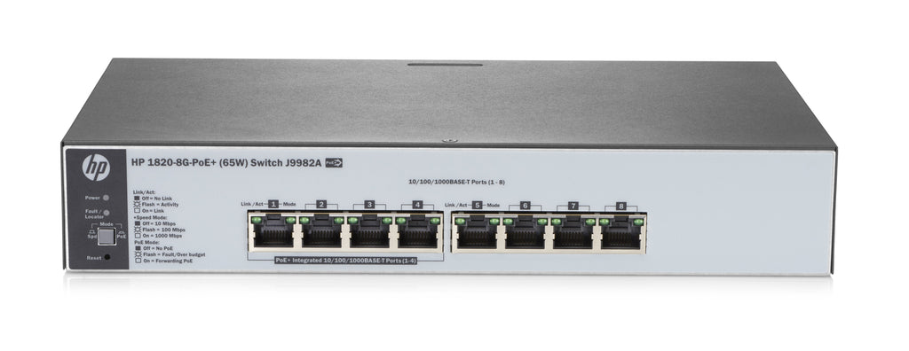 Hewlett Packard Enterprise Officeconnect 1820 8G Poe+ (65W) Managed L2 Gigabit Ethernet (10/100/1000) Power Over Ethernet (Poe) 1U Grey