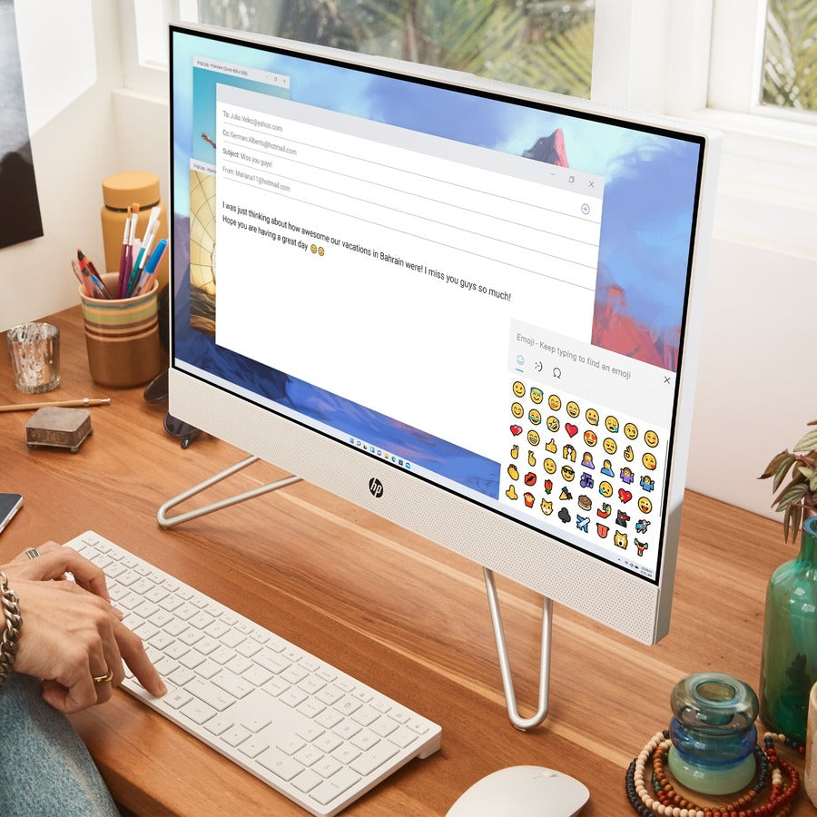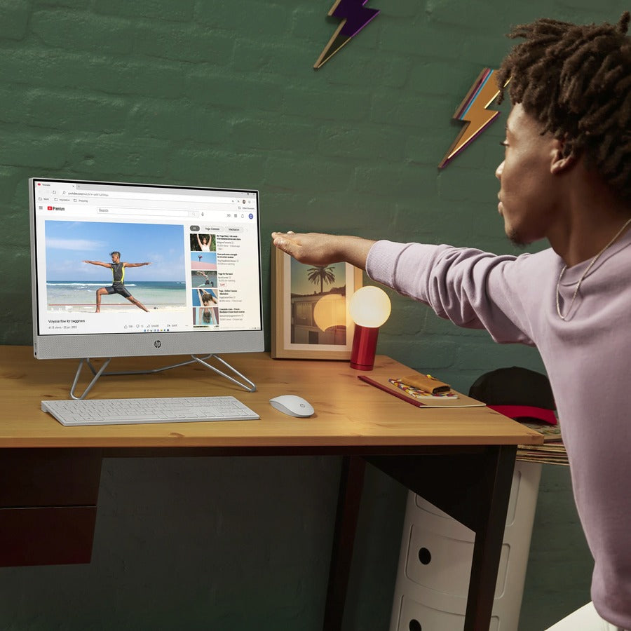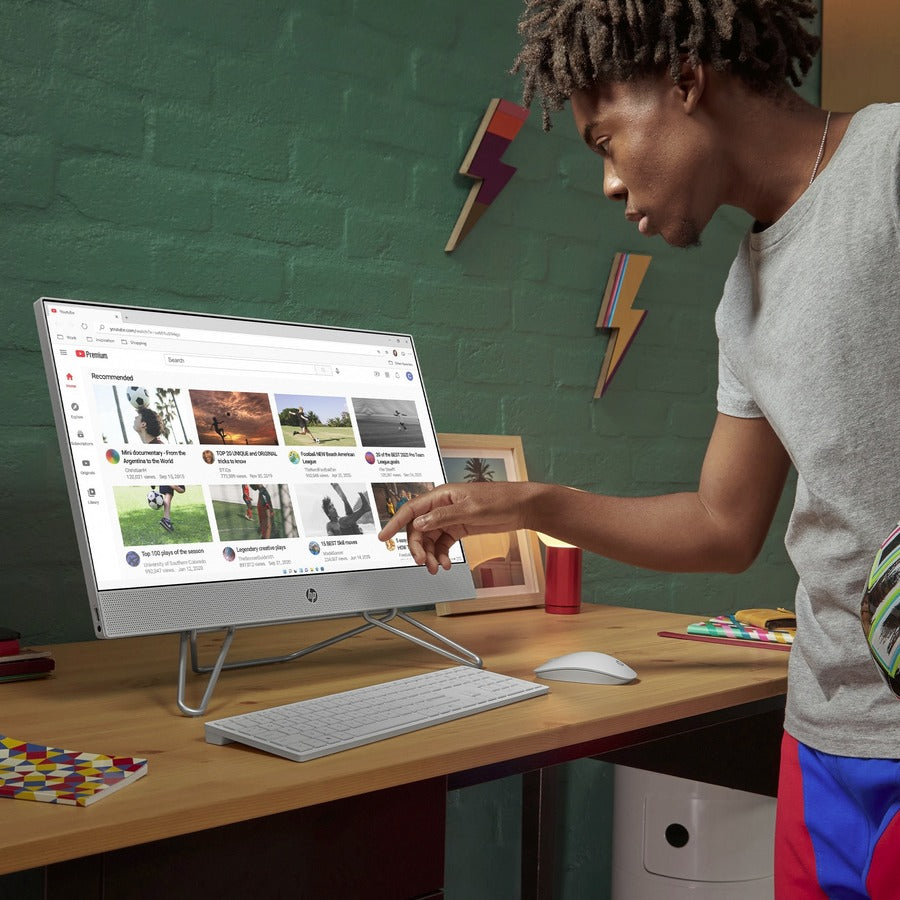 The HP All-in-One blends the power of a desktop with the beauty of a modern display. Powered by an Intel® processor, bring the cinema to you with a three-sided micro-edge Full HD display and dual speakers. This AIO design includes sustainable materials and is thoughtfully designed to keep your space clutter-free with thoughtfully placed ports.