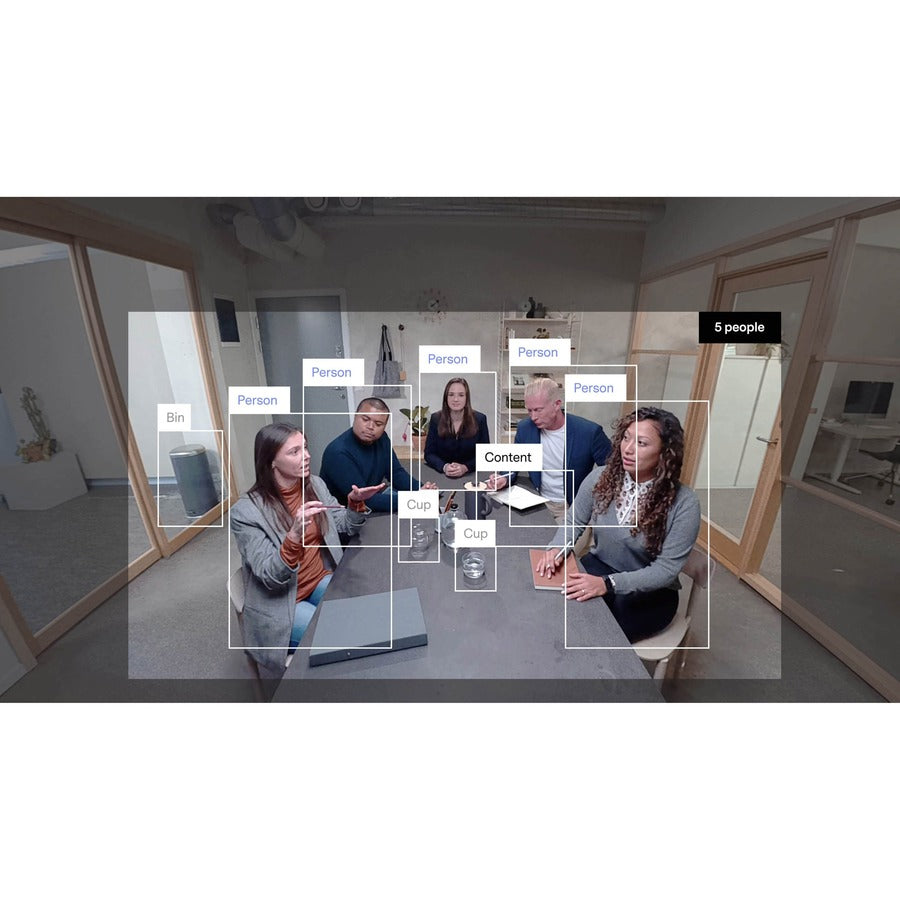 - Genius Framing The camera detects the people in its entire field of view and intelligently frames them for the best experience.