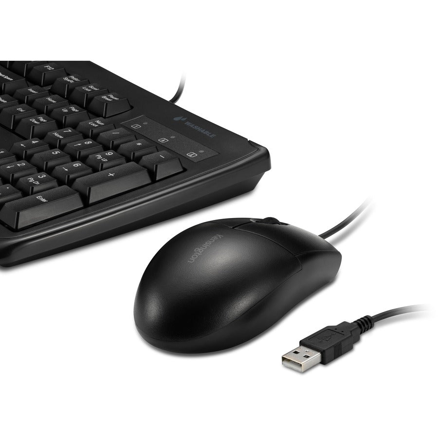 Kensington Pro Fit Washable Wired Desktop Set. Keyboard form factor: Full-size (100%). Keyboard style: Straight. Device interface: USB, Keyboard number of keys: 104, Recommended usage: Medical. Product colour: Black. Mouse included