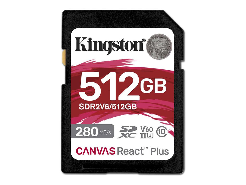 Kingston Canvas React Plus - Flash memory card - 512 GB - Video Class V60 / UHS-II U3 / Class10 - SDXC UHS-II