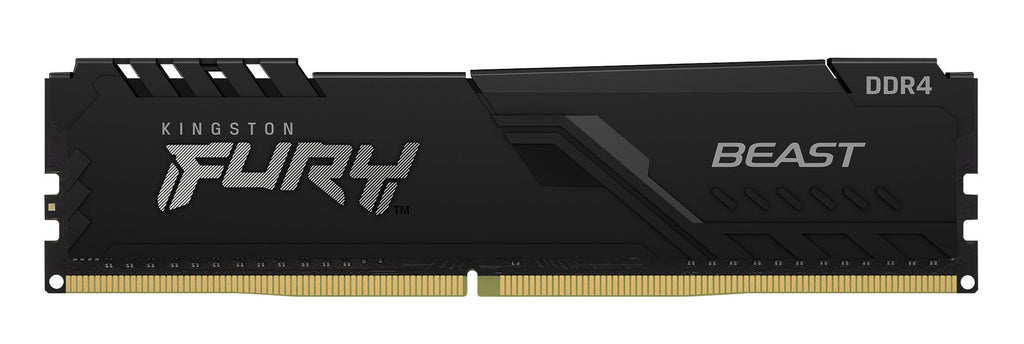 Kingston FURY Beast DDR4 Memory The Kingston FURY™ Beast DDR4 provides a powerful performance boost for gaming, video editing and rendering with speeds up to 3733MHz1. This cost-effective upgrade is available in 2666MHz–3733MHz speeds, CL15–19 latencies, single module capacities of 4GB–32GB, and kit capacities of 8GB–128GB. It features Plug N Play automatic overclocking at 2666MHz1 and is both Intel XMP-ready and ready for AMD Ryzen. FURY Beast DDR4 stays cool with its stylish, low-profile heat spreader.