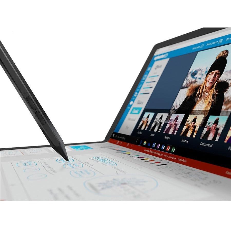 Give productivity a boost Add optional accessories to the X1 Fold to take your experience to the next level. Plug into a USB-C dock and connect to up to two external monitors. The Lenovo Fold Mini Keyboard connects via Bluetooth®, can be magnetically attached, and charges wirelessly when the device folds around it.* When you want to take notes or sketch, the rechargeable Lenovo Mod Pen is ideal—especially with its epic battery life. *Note that any Bluetooth keyboard can be used with the ThinkPad X1 Fold, including full-sized.