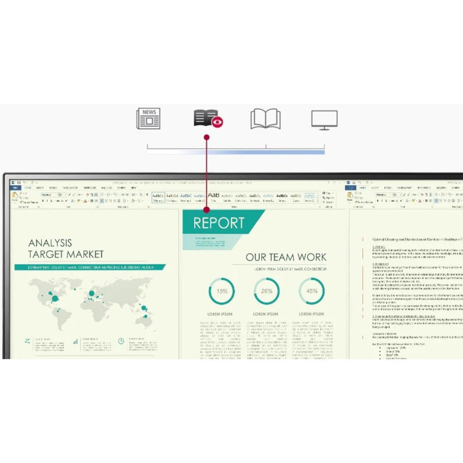Reader Mode Less Blue, Improved Visual Comfort Reducing blue light to help lessen eye fatigue, Reader Mode creates a screen with a color temperature similar to paper and provides optimal condition for reading.