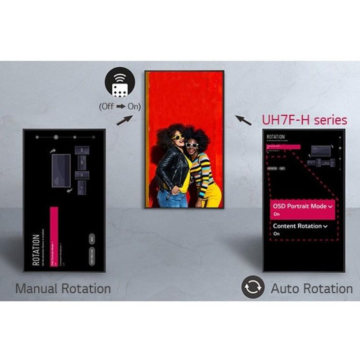 LG 65UH7F-H. Product design: Digital signage flat panel. Display diagonal: 165.1 cm (65"), Display technology: IPS, Display resolution: 3840 x 2160 pixels, Display brightness: 700 cd/m², HD type: 4K Ultra HD. Operating hours (hours/days): 24/7. Operating system installed: Web OS. Product colour: Black