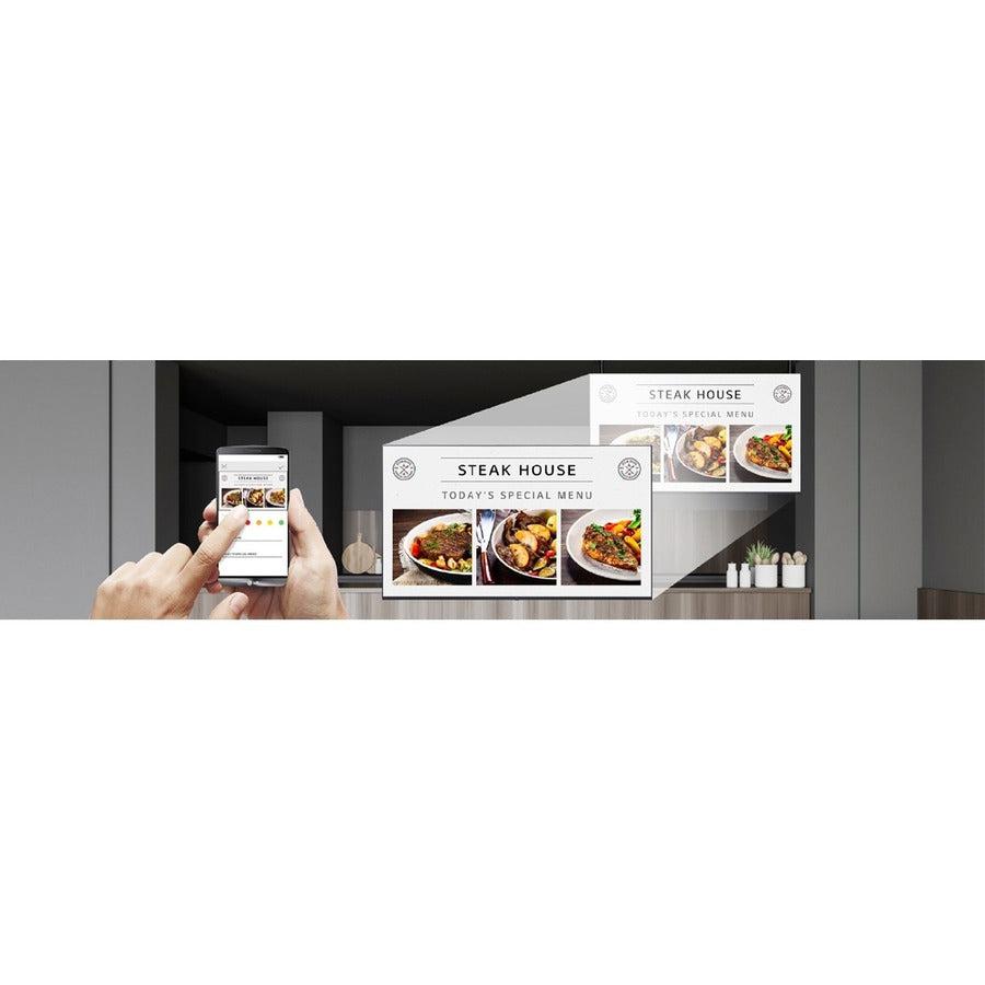 LG's Simple Advertisement Helper, Promota Using LG's Promota* application, downloadable on a mobile device, you can easily create your own display contents. With Promota, you can add text and images to create an online profile for your business as well as deliver information such as event news, seasonal menus, promotions, and even more to your customers while recommending easy-to-use templates relevant to your industry. * LG Promota is can be downloaded from the App Store and Google Play store. (Not available for Europe/CIS Region)
