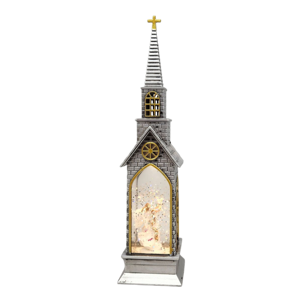 Infuse your holiday decor with a sense of tranquility and charm with the Christmas Church Snow Globe Lantern! Standing at 8.74 inches tall, this beautifully detailed lantern features a quaint church design complete with a steeple, intricate brickwork, and a golden cross that adds a touch of elegance. Inside, a snowfall effect creates a mesmerizing scene that captures the essence of the season, bringing warmth and joy to your holiday celebrations.