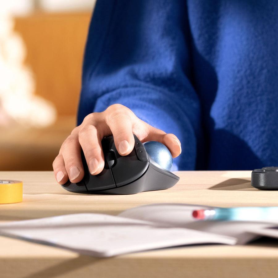 ERGO M575 Wireless Trackball for Business With science-driven design and easy thumb control, this wireless trackball mouse is engineered to reduce hand movement, keeping the hand and arm relaxed, providing hours of comfort.
