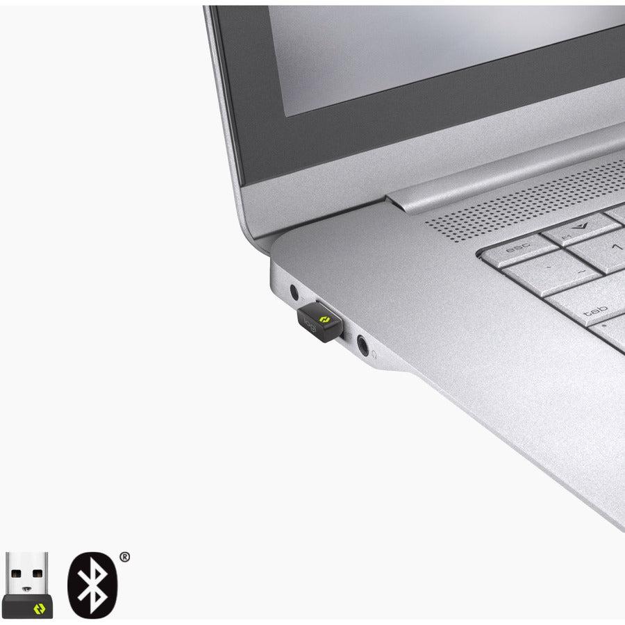 TWO WAYS TO CONNECT Two connection options: Bluetooth® Low Energy wireless technology or Logi Bolt—a tiny USB receiver designed for security and high performance even in congested wireless environments. Now users have the flexibility to connect how they want while IT ensures those connections are reliable and secure.
