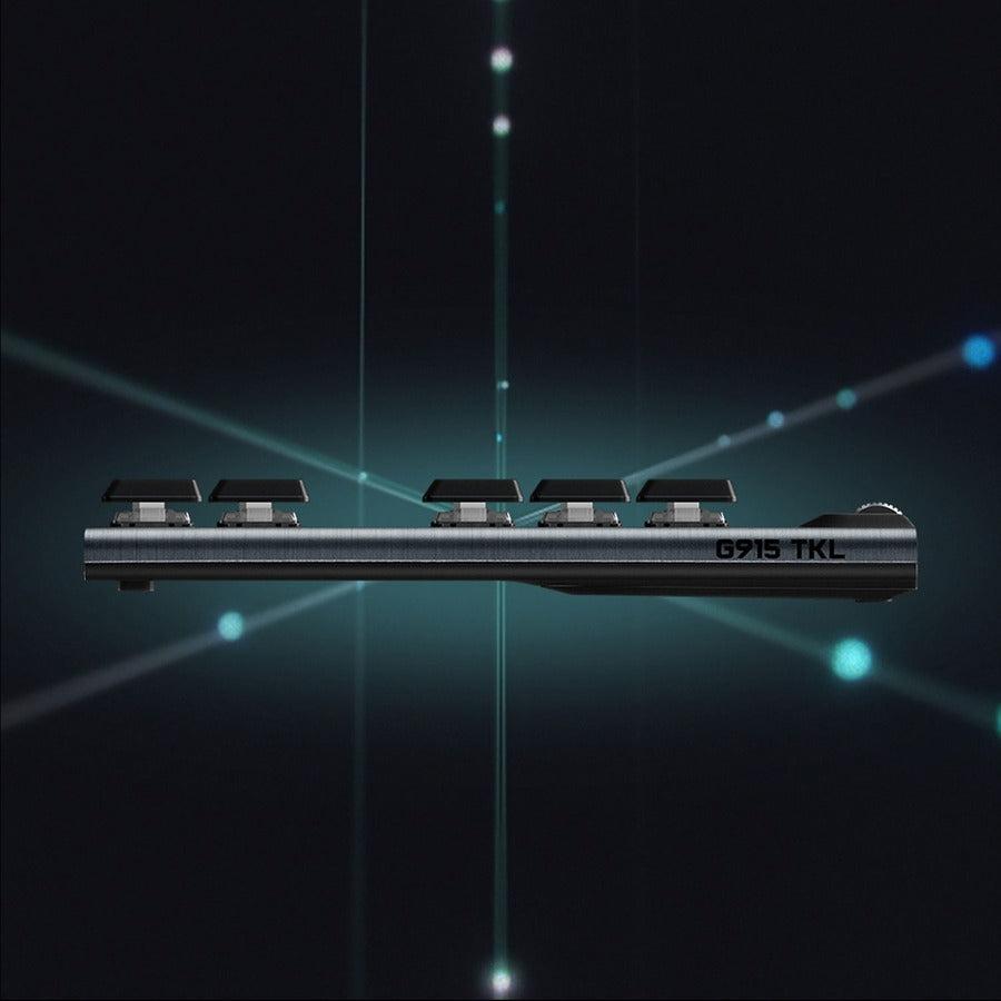 G915 TKL is a new class of wireless mechanical gaming keyboard with three selections of low-profile GL switches and pro-grade 1 ms LIGHTSPEED wireless. Capable of delivering 40 hours of non-stop gaming on a full charge.. Fully customizable per-key, LIGHTSYNC RGB technology also reacts to in-game action, audio and screen color as you choose. With a sleek, impossibly thin yet durable and sturdy design, G915 TKL brings gamers to a higher dimension of play. Dedicated volume wheel and media keys give you fast, easy control over video, audio, and streaming.