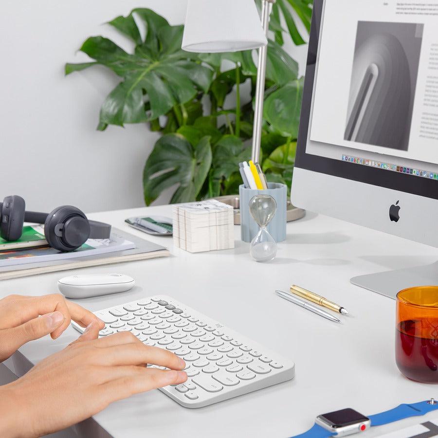 The Logitech® K380 Multi-Device Bluetooth® keyboard for Mac makes any space minimalist, modern, and multi-device, letting you type on youriPhone, iPad, MacBook, iMac * Connect with up to three Bluetooth-enabled devices simultaneously and switch instantly between them. The K380 Multi-Device for Mac is compact and lightweight. You can type on the device of your choice—anywhere. It automatically detects your device, maps keys, and provides a familiar typing experience with all your favorite iOS shortcuts. So you can own your space on any Apple device, anywhere. Two years of battery life** virtually eliminates power concerns. You may even forget the keyboard needs batteries! * Bluetooth-enabled devices that support external keyboards ** Battery life may vary based on user and computing conditions.