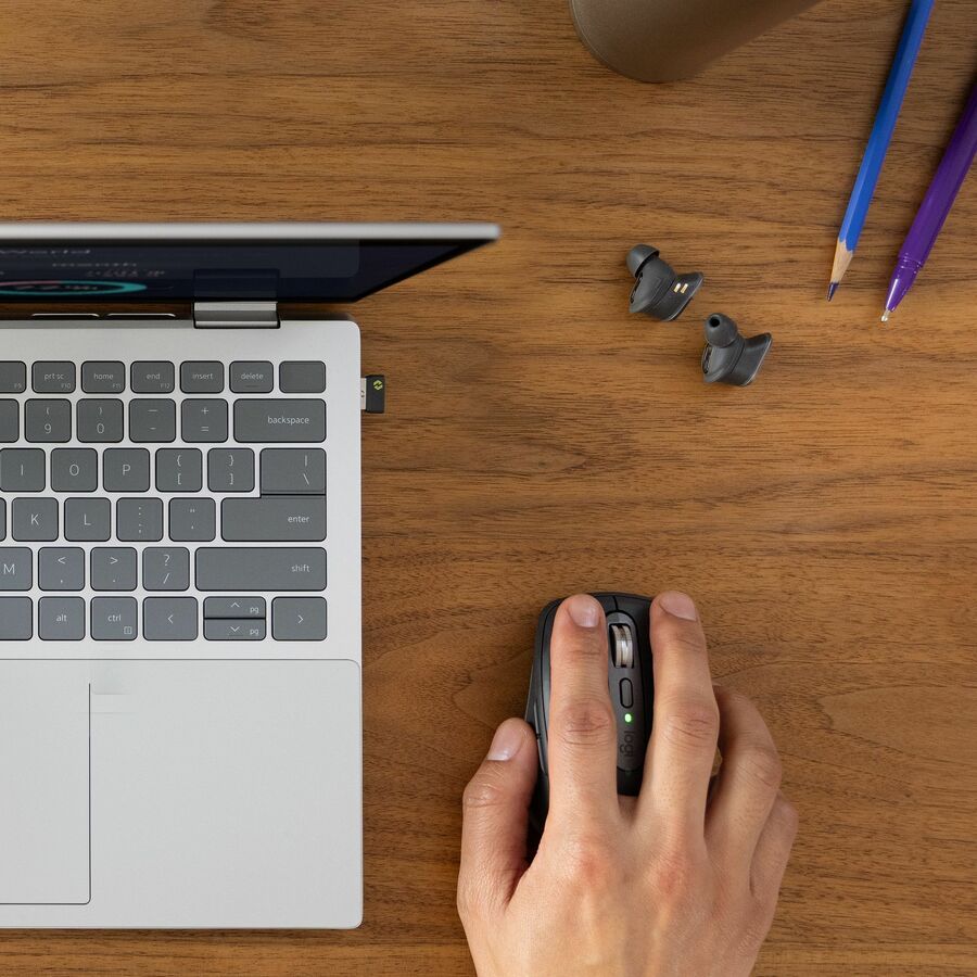 This compact mouse makes both IT help desks and on-the-move employees happy. The MX Anywhere 3S for Business features distraction minimizing Quiet Click technology, MagSpeed scrolling and precise 8000 DPI tracking that works even on glass. Zip down 1000 spreadsheet rows in just one second or enjoy line-by-line accuracy. Efficiency is improved with easy button customization and IT remote management (DFU) with Logi Options+. Minimizes noises in the office and it's compatible with most major OS across desktops, laptops, tablets and smartphones. Portable, compact and convenient with a long battery life for fewer interruptions. For IT peace of mind, it connects securely via a Logi Bolt USB receiver that works even in congested wireless environments.