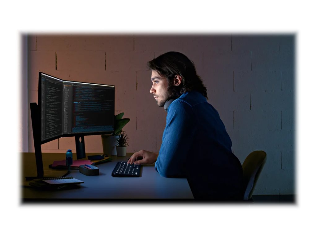 Proximity sensors detect your hands, illuminating the keyboard the moment your fingers approach. The backlit keys then fade off when you leave the desk - saving power for those moments of inspiration. Backlighting intensity automatically adapts to lighting conditions, or can be set manually.