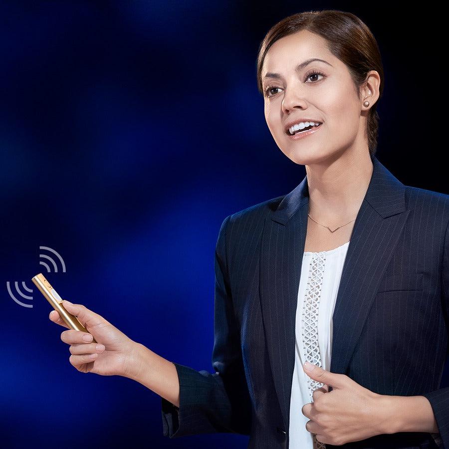 Meet Spotlight. A game-changing presentation remote. Spotlight allows you to simply navigate slides and interact with on-screen content from up to 100 feet away.2 The customizable timer sends haptic notifications directly to hand – and the advanced pointer system allows you to highlight and magnify areas of focus in pixel-perfect detail.1 Add to that gesture-commanded scrolling, panning, and volume control and you can be sure to crush every presentation. A full charge lasts up to three months2, and Spotlight is plug-and-play on most devices and platforms running popular presentation software.