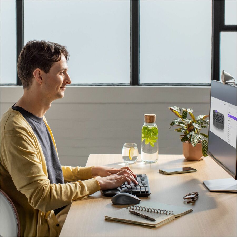 Typing feels instantly familiar on Wave Keys' wavy keyframe design. A cushioned palm rest lifts pressure and improves wrist support. Meanwhile, the Signature M550 L's contoured shape and rubber side grip keep medium to large-sized hands comfy throughout the day. Both devices have been made with recycled plastic, have a long battery life (Keyboard: up to 3 years; Mouse: up to 2 years using included batteries and connect easily using Bluetooth or the included Logi Bolt receiver.