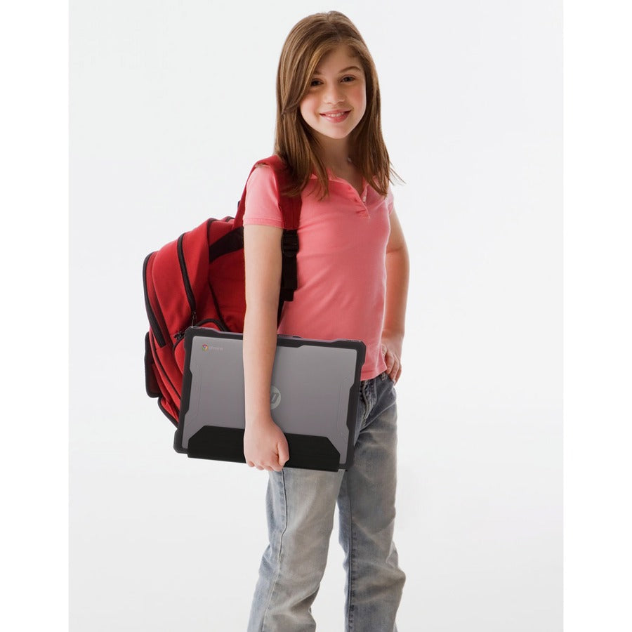 This tough, wrap-around case takes our popular Extreme Shell to new levels of protection and functionality with our new MAXGrip spine. With updated rugged bumpers and overlap corners that are slim and lightweight, the -S model adds protection and functionality with an easy-grip, book-cover spine, designed to also protect the vulnerable hinge area. This wide, textured surface provides more secure carrying, delivering added insurance against drops. The rigid top and bottom panels made of compound polycarbonate, thermoplastic and polyurethane protect against scratches and impact damage. With a snug, perfect fit, the Extreme Shell-S supports all device functions and provides easy port access. Custom colors and MAXProtec antibacterial upgrade available with minimum quantity of 500 (additional fees apply).