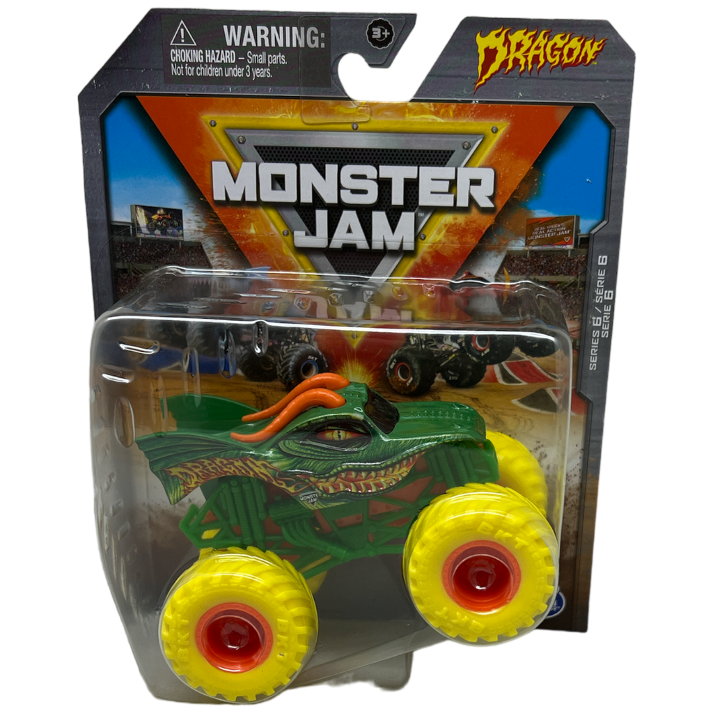 Monster Jam trucks, such as this Dragon model, are known for their impressive designs and durability, making them a favorite among collectors and children alike. Each toy embodies the thrilling and explosive nature of Monster Jam events, bringing the excitement of the arena to the comfort of your home. Fun fact: Monster Jam events are famous for their "freestyle" competitions, where drivers perform stunts and tricks, making each performance unique and exhilarating.