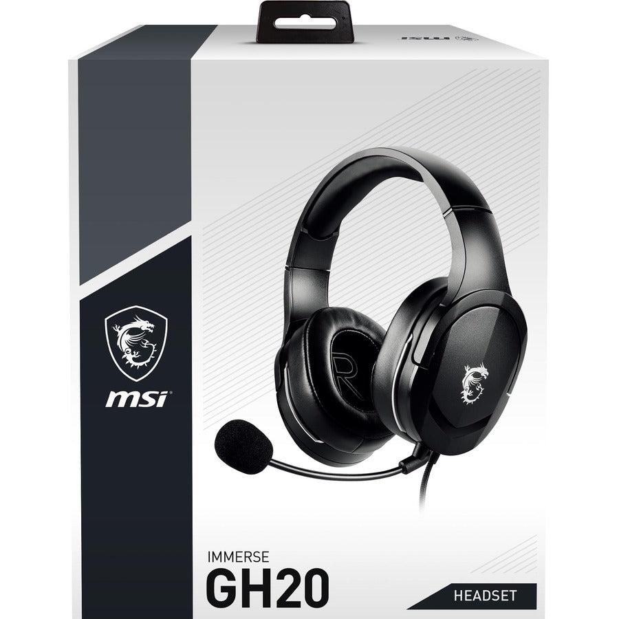 MSI IMMERSE GH20 Gaming Headset '3.5mm inline with audio splitter accessory, Black, 40mm Drivers, Unidirectional Mic, PC & Cross-Platform Compatibility'. Product type: Headset. Connectivity technology: Wired. Recommended usage: Gaming. Headphone frequency: 20 - 20000 Hz. Cable length: 1.5 m. Weight: 245 g. Product colour: Black