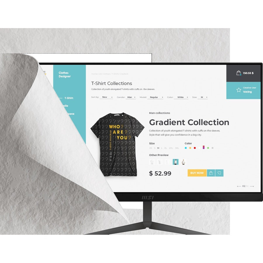 MSI Modern 11M-206US. Product type: All-in-One PC. Display diagonal: 60.5 cm (23.8"), HD type: Full HD, Display resolution: 1920 x 1080 pixels, Panel type: IPS. Processor family: Intel® Pentium® Gold, Processor frequency: 2 GHz. Internal memory: 4 GB, Internal memory type: DDR4-SDRAM. Total storage capacity: 128 GB, Storage media: SSD. On-board graphics adapter model: Intel® UHD Graphics. Operating system installed: Windows 10 Pro. Product colour: Black