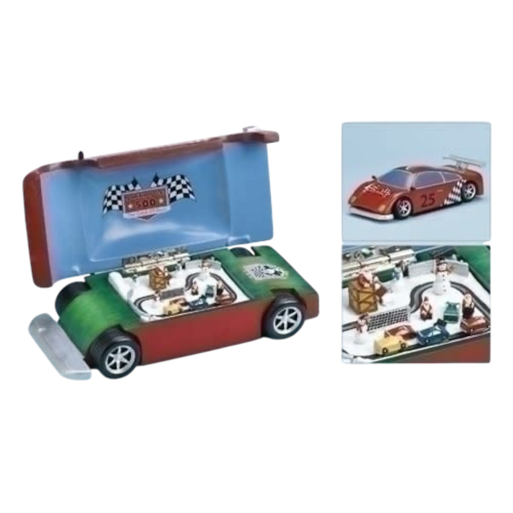 Rev up the holiday spirit with Santa's Racing Adventure! This delightful 10-inch race car features a whimsical design that opens up to reveal a magical race track bustling with Santa and his merry crew. At 3 inches tall and about 4.5 inches deep, this charming piece is sure to become a festive centerpiece in your holiday décor. When you engage the battery-operated mechanism (batteries not included), prepare for a delightful medley of Christmas songs that will fill your home with joy and nostalgia, transporting you back to your childhood days of excitement and cheer!
