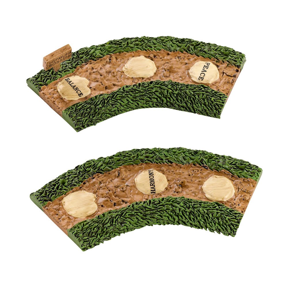 Create a whimsical escape in your garden or village display with the enchanting My Garden Path Curved. This delightful set includes two beautifully crafted pieces, perfect for paving the way to harmony and serenity in your miniature landscapes. Adorned with green grass and serene stepping stones, each stone bears a thoughtful message of "Balance," "Peace," and "Harmony," inviting tranquility and good vibes into your outdoor space or fairy garden. Hand-painted with care, these paths add a touch of charm and color to any setting.