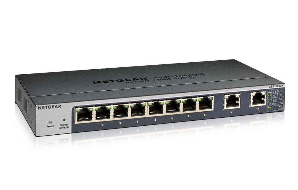 5-Speed Networking The all new GS110EMX, XS512EM and XS724EM comes with the revolutionary 5-speed Multi-Gigabit technology built in the NETGEAR multi-speed switches allows your devices to speed past the Gigabit barrier. The ports automatically detects which speed is needed by the connected device and provides the adequate speed. Moreover the Multi-speed switch ports can be connected with regular Cat5E Ethernet cables, without the need to upgrade to Cat6 wiring, therefore reducing wiring costs and hassle.