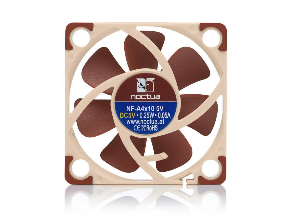 Featuring advanced aerodynamic design measures such as Flow Acceleration Channels and an AAO standard frame, the NF-A4x10 5V is a dedicated 5V version of Noctua’s highly optimised, premium quality quiet 40x10mm fan. Smooth Commutation Drive technology and Noctua’s reference class SSO2 bearing guarantee superb running smoothness and excellent long-term stability. Topped off with modular cabling, the OmniJoin™ Adaptor Set and 6 years manufacturer’s warranty, the NF-A4x10 5V is a premium choice for demanding 5V applications.