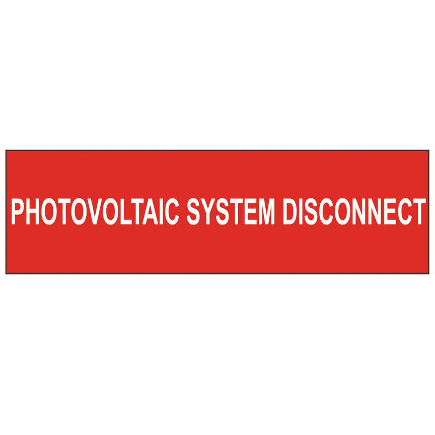 Solar label, 1.75" H x 6.0" W (44.5mm x 152.4mm), blank header, 'Photovoltaic system disconnect' (legend), reflective polyester adhesive, white/red, 50 labels/roll, 50 roll/package.