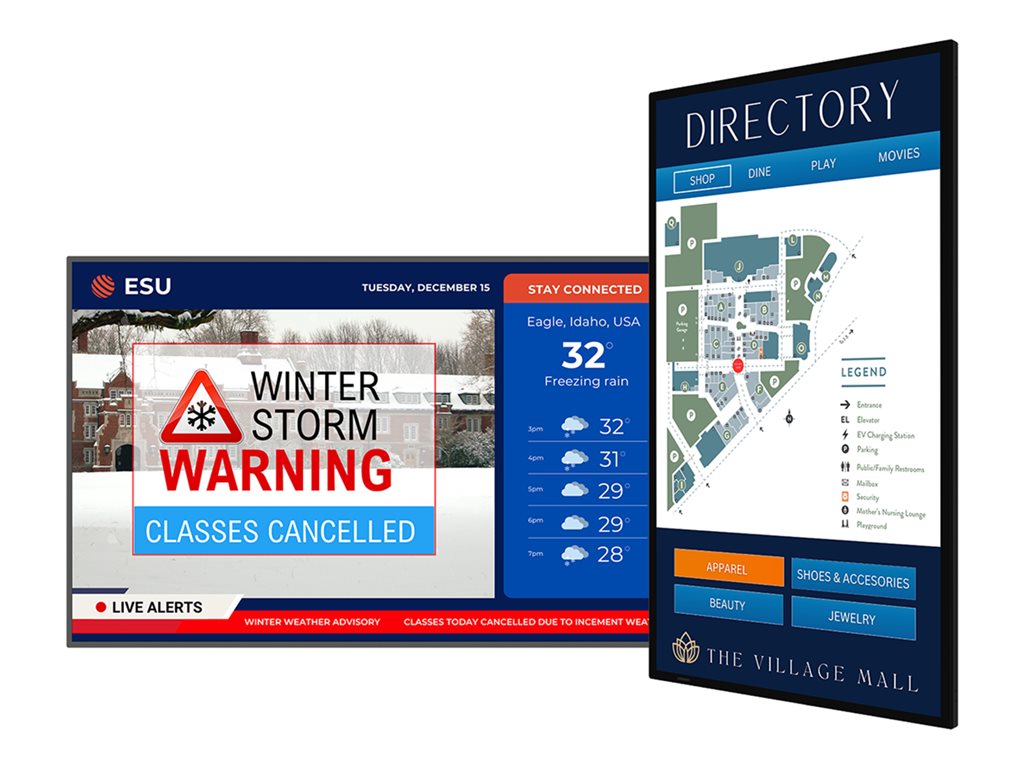 The Planar Simplicity P Series SLP43 is a 43" 4K LCD display for landscape and portrait digital signage. It affordably incorporates media playback, 4K @ 60Hz support, 24x7 commercial functionality and is ENERGY STAR and Cybersecurity certified. With an elegant design and narrow, logo-free bezel and slim profile, it delivers an ideal digital signage solution for applications requiring continuous 24x7 operation including wayfinding, emergency messaging, advertising and menu boards.