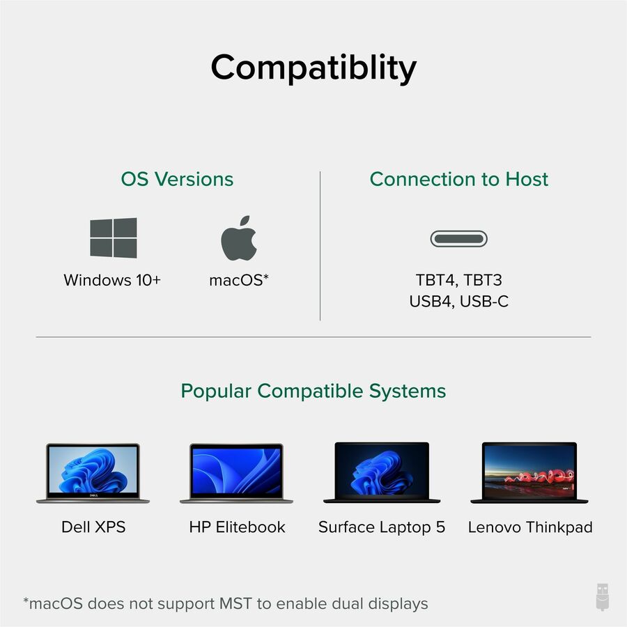 The full power of USB4 is on display in the Plugable 11-in-1 Dual Monitor Docking Station (UD-4VPD). Featuring two HDMI 2.1 ports that support up to 4K 120Hz, to provide crisp, smooth clarity across your HDMI monitor setup. If you really want to pack in the pixels, extend to 1x screen at 8K 60Hz. The UD-4VPD computer docking station doesn't just bring you the best-in-class display options as a dual monitor adapter. It also resets the expectations of what a USB C dock should be capable of. And it does that with business-grade ports and specs. Native USB4 controller enables massive 40Gbps bandwidth for USB4 and Thunderbolt 4 systems. Connect your peripherals with 2x USB 10Gpbs ports, and 1x USB port 5Gbps. Connect to your network with a 2.5Gbps Ethernet port. Transfer data and images with SD and Micro SD card readers. Take advantage of the USB-C port with 10Gbps data and 20W fast charging for phones and tablets. Perhaps the most helpful feature, this USB-C docking station provides up to 100W chargin