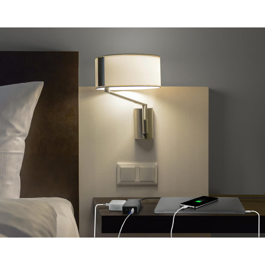 The Travel Power Station gives easy access to outlets and charging ports exactly where you need it, when you need it. No more fumbling behind a night stand or accidentally leaving your charger in the hotel room; The Power Station is always in sight and accessible.