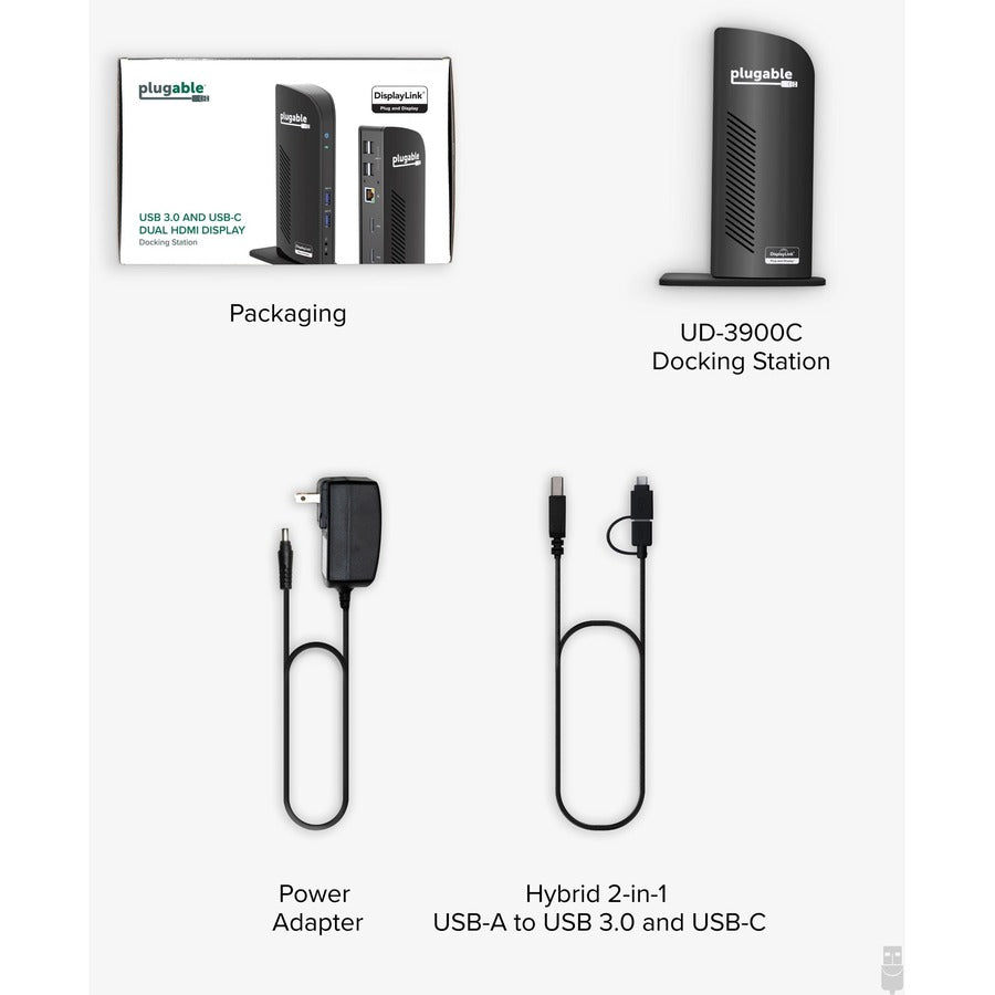Why has the Plugable Dual HDMI Display USB-C and USB 3.0 Docking Station (UD-3900C) become the go-to docking station for IT departments setting up a hybrid office? Features like a hybrid 2-in-1 cable so most USB Type-A or USB Type-C laptops can walk up and connect. Standardizing on HDMI-no more dongles, adapters, or daisy chains to get your screens connected, and DisplayLink for laptops that don't natively support dual displays-like an M1 Mac-make it the easy solution for hybrid offices.