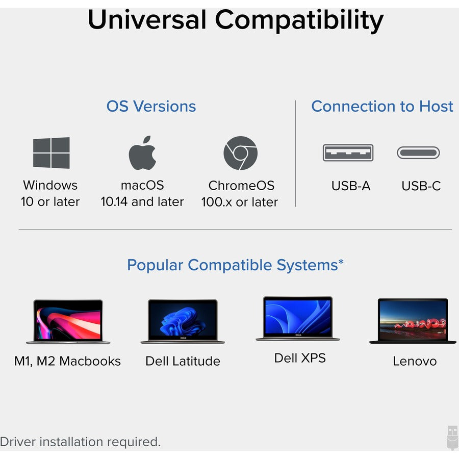 - COMPATIBILITY - Docking station compatible with Windows 11, 10, 8.x, 7 and macOS 10.14+. Plug and play driver installation via Windows Update; manual driver installation on macOS. Linux not supported. Wired Ethernet supports Gigabit speed. Dock does not charge host PC
