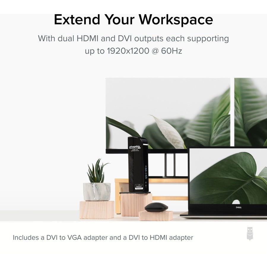 Plugable USB 3.0 Universal Laptop Docking Station Dual Monitor for Windows and Mac