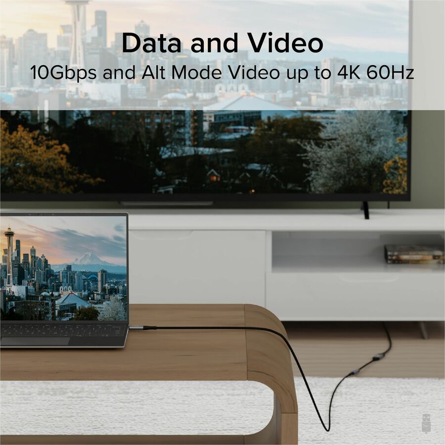 When extending an equally capable Thunderbolt 4, or USB C data cable with charging, like the Plugable USB4-240W-1M USB C data cable with charging, get 240W Extended Power Range support, or support for video Alt mode at up to 4K 60Hz. This USB C to C cable also supports impressive 10Gbps data transfer speeds. And, as nice as it is to have, the most innovative feature isn't the braided cord or the aluminum housing.