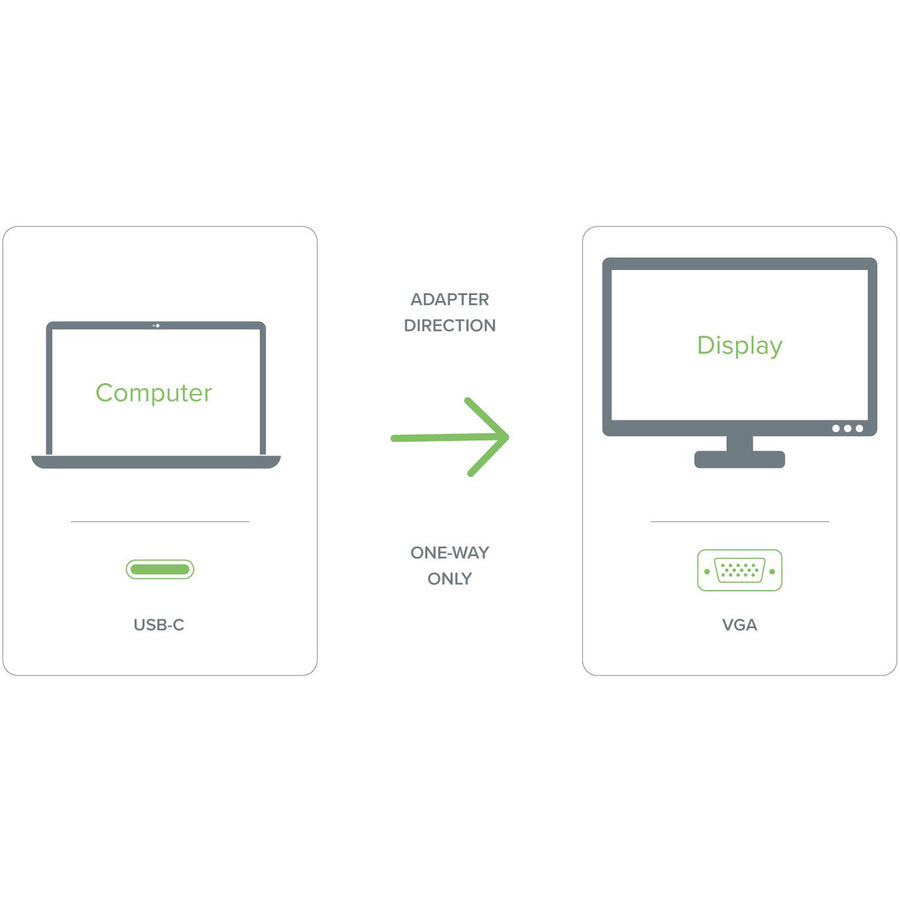 - USB-C TO VGA-Utilizes the native video capabilities of USB-C ports on supported computers to drive a VGA monitor with resolutions up to 1920x1200 @ 60Hz