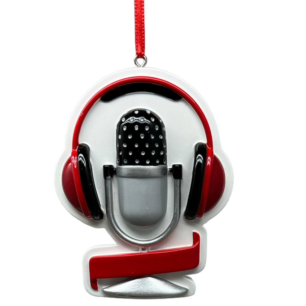 Celebrate the passion for broadcasting, music, and communication with this striking microphone and headphones ornament. Featuring a sleek vintage-style microphone paired with bold red headphones, this ornament captures the essence of the world of audio. Its stylish design and rich colors make it an ideal centerpiece for any holiday decor, honoring those who lend their voices to storytelling, entertainment, and information.