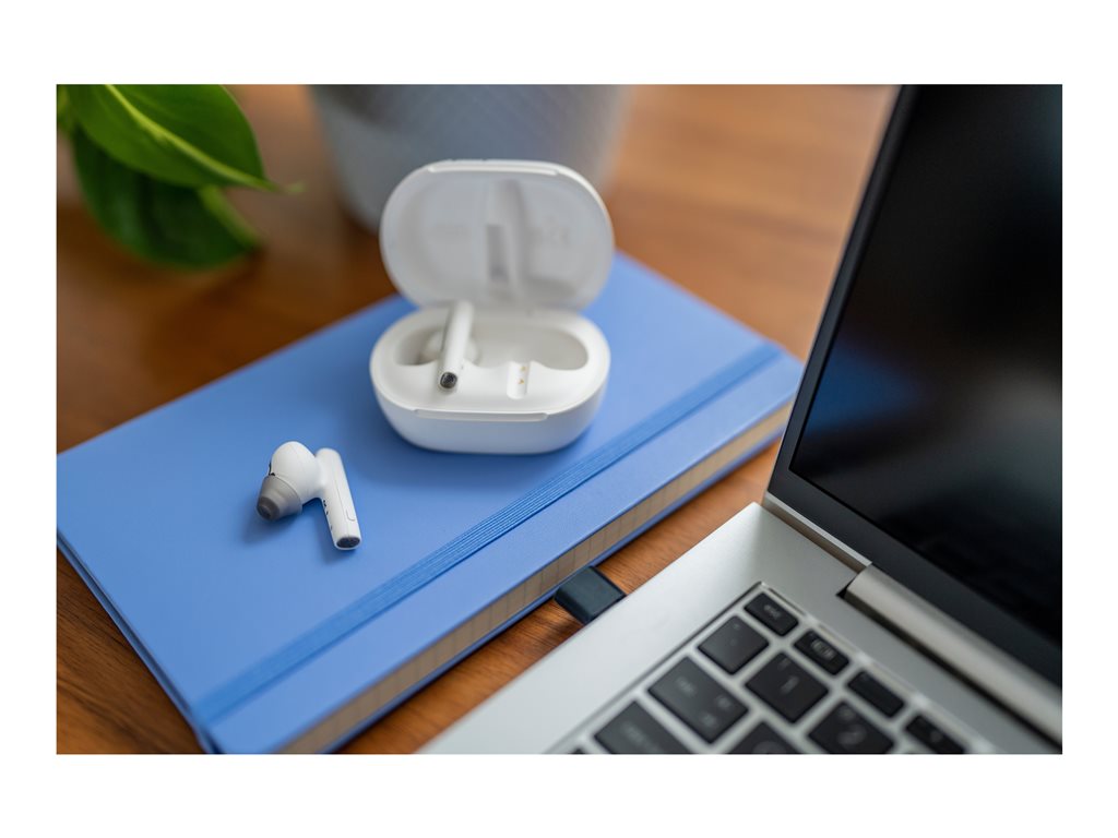 Tune into a world full of sound and free of noise with these earbuds. Whether you're on a video call or into your playlists, these wireless earbuds are designed to keep you productive, connected and entertained.